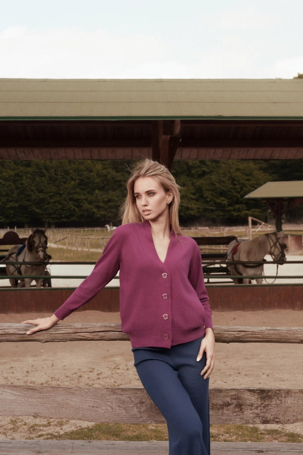 Cardigan scollo a V in cashmere blend con bottoni in tinta