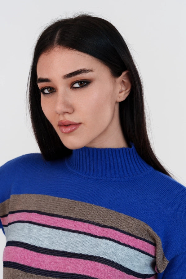 Questo capo, frutto dell’artigianalità italiana, unisce tradizione e modernità. La lavorazione a rasato mette in risalto il gioco cromatico delle righe, regalando un look sofisticato e versatile. La combinazione di lana e viscosa dona morbidezza, leggerezza e calore, rendendolo perfetto per avvolgere con comfort chi lo indossa.