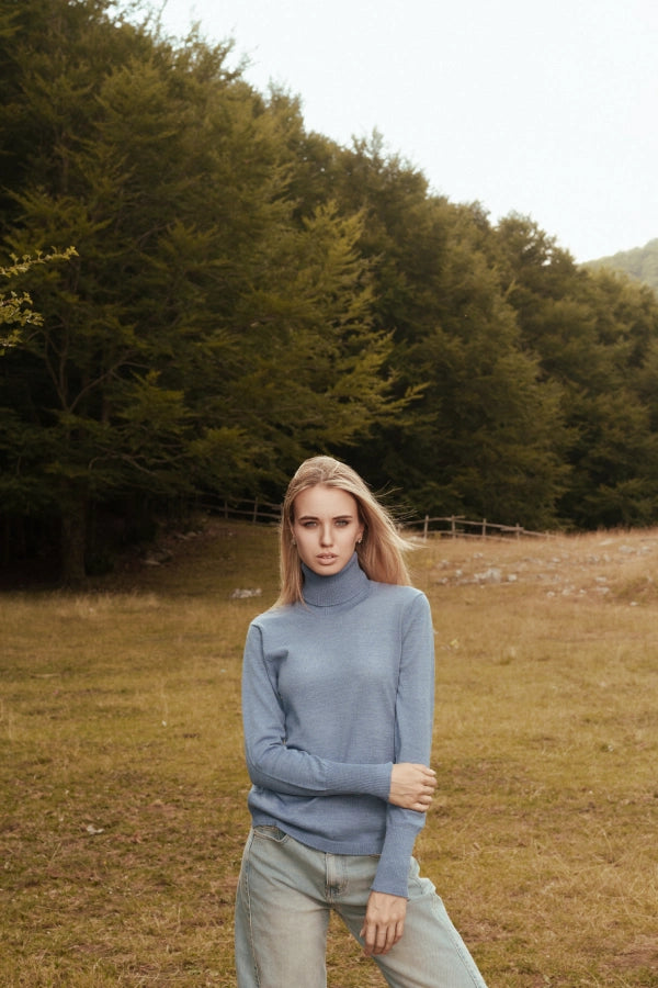 Questa maglia artigianale in pura lana merino rappresenta un capo senza tempo, perfetto per ogni occasione. Realizzato con una lavorazione a rasato sottile, il pullover è morbido, leggero e confortevole. Le maniche lunghe e il collo alto donano un’eleganza discreta, mentre i polsini alti aggiungono un tocco distintivo, contrastando con il fondo basso che conferisce un aspetto più rilassato.