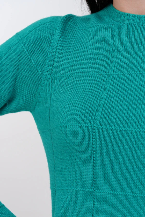 Pullover girocollo a quadri senza cuciture cashmere blend