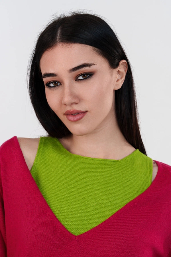 Twin set bicolore cashmere blend scollo a V e canotta a rasato